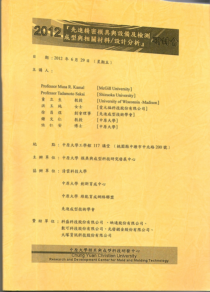 2012先進精密模具與設備及檢驗成型與材料/設計分析 研討會演講